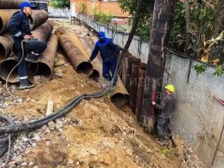 Установка шпунтовых ограждений на очистных сооружениях многоквартирных домов.