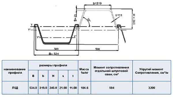 Характеристики шпунта Ларсена Л5Д