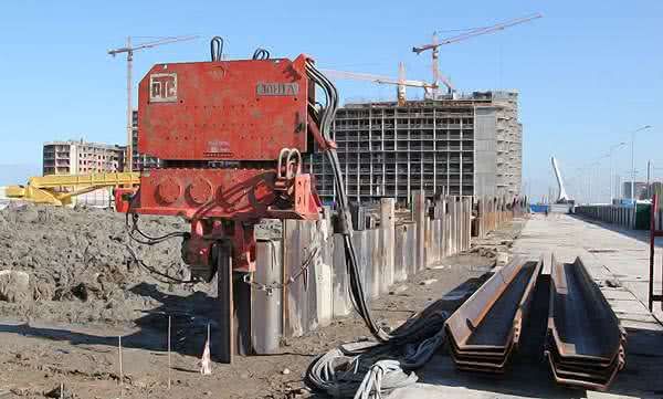 Извлечение шпунтовых ограждений при строительстве спортивного комплекса.