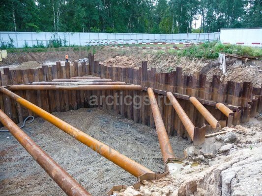 Шпунтовое ограждение обеспечивает защиту от обрушения почвы, выдерживая высокие нагрузки