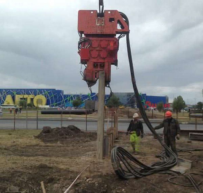 Извлечение шпунтовых ограждений при строительстве спортивного комплекса.