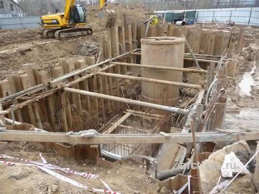 Шпунтовое ограждения котлована при строительстве многоэтажного жилого дома