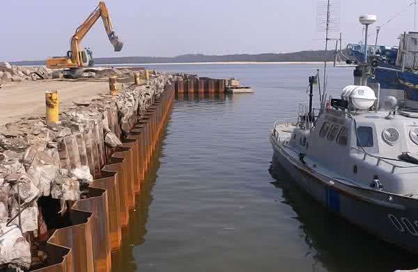 Шпунтовые работы подразумевают укрепление береговой линии путем установки защитных стенок, препятствующих сползанию грунта