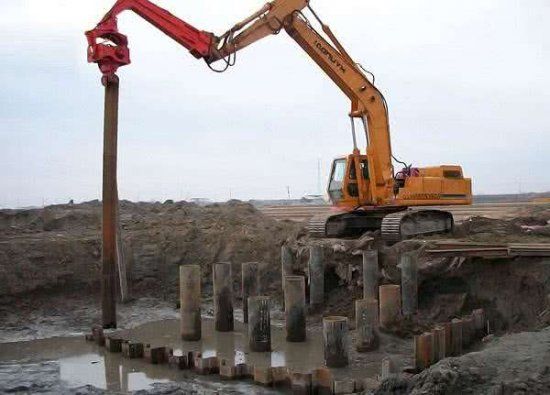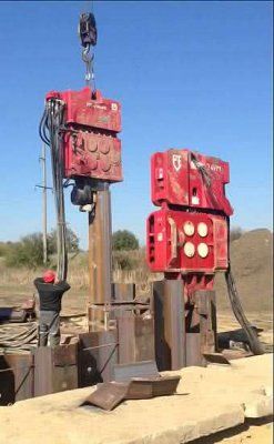 Вибропогружение - Это погружение труб в грунт с помощью специального вибрационного устройства. Особенно эффективен этот метод на насыщенных водой участках с большим процентом содержания песка и на болотистой местности. Чаще всего способ применяется при строительстве гидросооружений, укреплении берега и на глубоких котлованах.