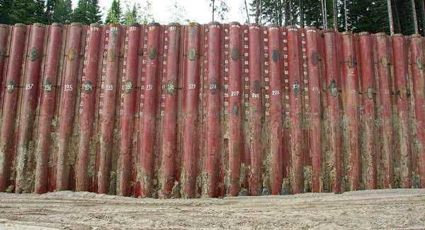 Такое ограждение применяется для того, чтобы защитить стены вырытого котлована от осыпания и обрушения, которое ему грозит вследствие проведения работ по забиванию свай.